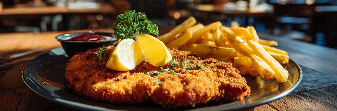 Die Putenschnitzel werden bei uns mit Butterschmalz in der Pfanne gebraten. Sie können wahlweise mit Pommes, Kroketten, Salzkartoffeln oder Bratkartoffeln serviert werden. Dazu reichen wir einen kleinen Salat.